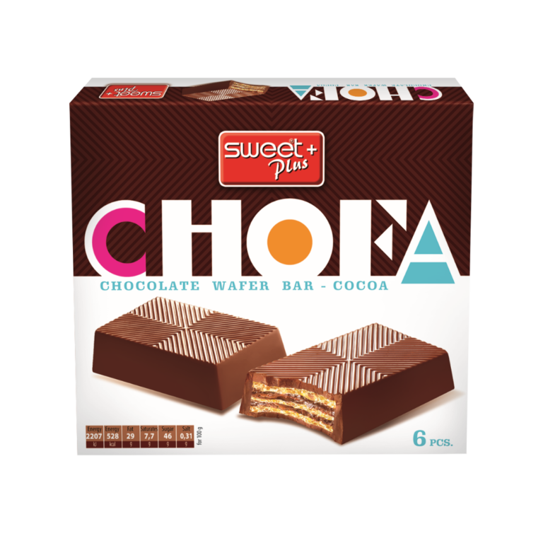 CHOFA to delikatny, chrupiący wafel, przekładany kremem kakaowym i oblany grubą warstwą mlecznej czekolady. Każde opakowanie zawiera 6 mini batoników waflowych, ułożonych w plastikowym korytku. Jest to propozycja marki ZIV z Bułgarii.