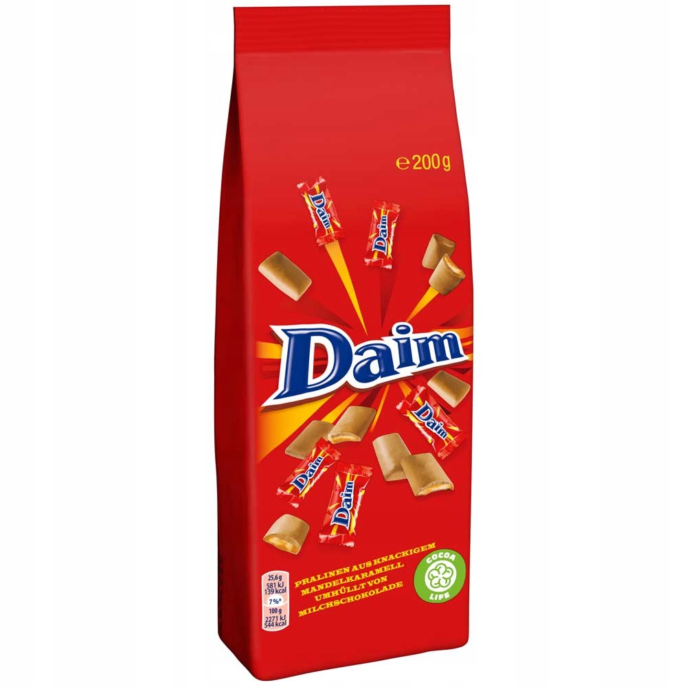 Składniki: cukier, olej palmowy, masło kakaowe, miazga kakaowa, migdały (3%), słodka serwatka w proszku (z mleka), odtłuszczone MLEKO w proszku, masło, produkt serwatkowy (z mleka), słodzone skondensowane odtłuszczone MLEKO, sól kuchenna, emulgator (Lecytyna SOJOWA), substancja glazurująca (guma arabska), aromaty.