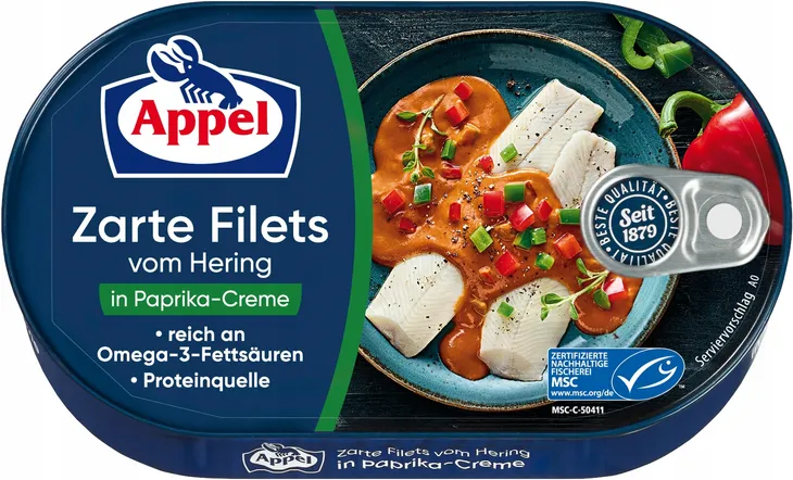Delikatne filety śledzia w kremie paprykowej Appel, 200 g