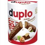 Duplo to kultowe batoniki czekoladowe marki Ferrero, łączące delikatną mleczną czekoladę z chrupiącym wafelkiem i aromatycznym nadzieniem z orzecha laskowego. Każdy batonik zapakowany jest osobno, co czyni je idealnymi do dzielenia się lub jako słodka przekąska na każdą okazję. Opakowanie zawiera 10 batoników o łącznej wadze 182 g.