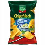 Funny Frisch Chipsfrisch Zaziki Style 150g – Chipsy ziemniaczane Funny Frisch o smaku tzatziki. Jak z Grekami. Czy często tęsknisz za smakiem wakacji w krainie starożytnych bogów i turkusowych zatok? W takim razie koniecznie wypróbuj zabawny frisch Chipsfrisch Zaziki Style. Chrupiące chipsy ziemniaczane powstały na bazie pikantnego kremu jogurtowego i wiernie odwzorowują smak czosnku, świeżych ziół oraz nutę ogórka. Delektuj się tą pożywną przekąską, gdy znów najdzie Cię ochota na wakacje w Grecji .