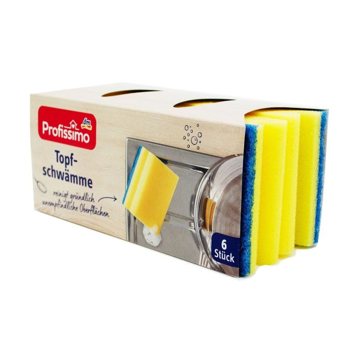 Gąbki do naczyń Profissimo dokładnie czyszczą niewrażliwe powierzchnie. Wytrzymała włóknina do szorowania zapewnia dokładne czyszczenie, gąbka nadaje się do mocnego wycierania.. *Opakowanie posiada co najmniej 70% zawartości pochodzącej z recyklingu.