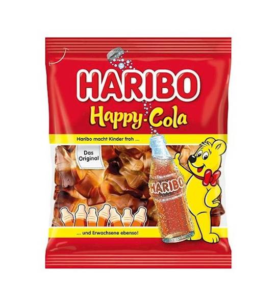 Żelki Haribo Happy Cola to pyszna przekąska, która swoim smakiem zachwyci dzieci i dorosłych. Miękkie żelki o smaku coli mają idealną konsystencję. Kształt butelek i biało-brązowy kolor świetnie wpasowują się w smak słodyczy.