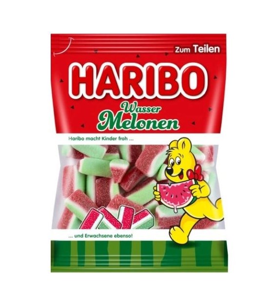 Lato w Haribo Melonen pokazuje swoją najlepszą stronę. Trójkolorowe kawałki arbuza z żelatyny owocowej występują w kolorach zielonym, białym i czerwonym. Mają bardzo miękką konsystencję i dlatego łatwo rozpuszczają się na języku, całość smakuje jak arbuz w sezonie. 😀