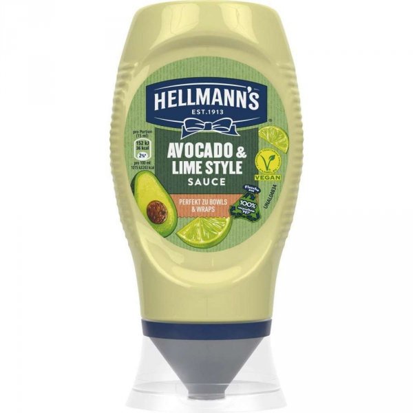 Wykonany z wyselekcjonowanych składników, sos zachwyca wyjątkową kremową konsystencją i świeżym połączeniem awokado i limonki. Sos Hellmann’s Lime & Avocado Style to absolutny must-have dla każdego, kto jest (także) wegetarianinem lub weganinem. Pyszny sos Hellmann’s można łączyć na wiele sposobów dzięki zrównoważonemu smakowi i kompozycji. Ma idealną konsystencję do maczania i uszlachetniania sałatek lub kanapek
