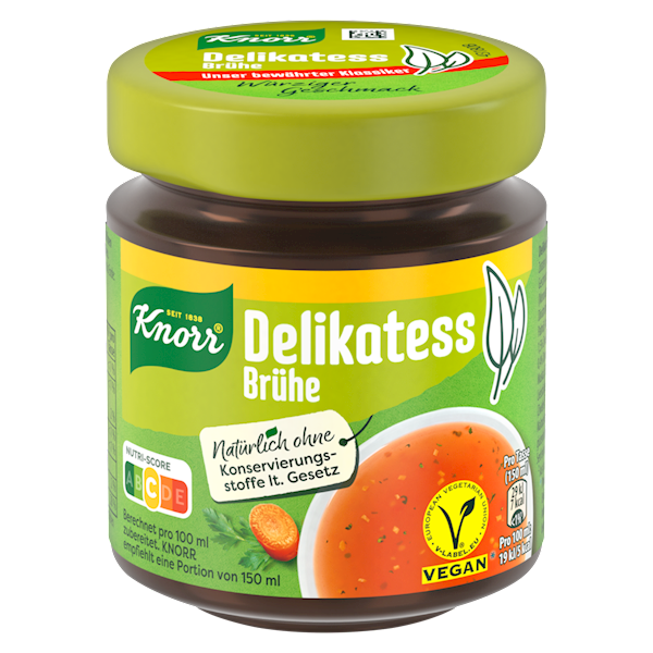 Bulion Knorr Delikatess w szkle jest wegański i pikantny smak. Warzywa i aromatyczne zioła nadają mu pikantną nutę. Idealny do przypraw, przypraw i rafinacji.
