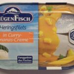 Rügen Fisch Heringsfilets in Curry-Ananas-Creme to delikatne filety śledziowe zanurzone w aromatycznym sosie curry z dodatkiem ananasa. Połączenie wyrazistego smaku śledzia z lekko słodką, kremową nutą ananasa tworzy idealnie zbalansowaną kompozycję. Produkt doskonale sprawdzi się jako gotowe danie, dodatek do pieczywa, sałatek lub jako szybka przekąska na zimno.