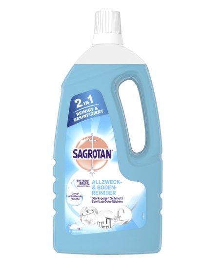 Uniwersalny środek czyszczący Sagrotan oferuje w jednym produkcie to, czego potrzebujesz do higienicznie czystego domu. Ma zastosowanie do wszystkich zmywalnych na mokro powierzchni i przedmiotów, usuwa 99,9% bakterii i zapewnia higieniczną czystość. Pozostawia świeży zapach i lśniące powierzchnie.